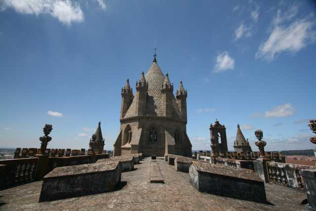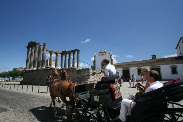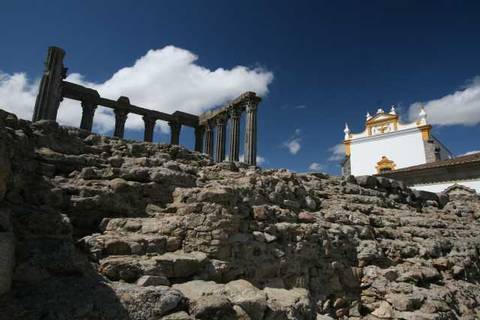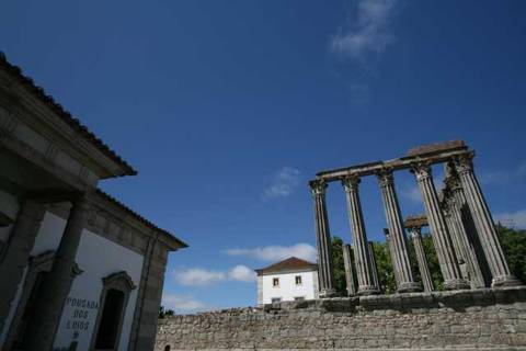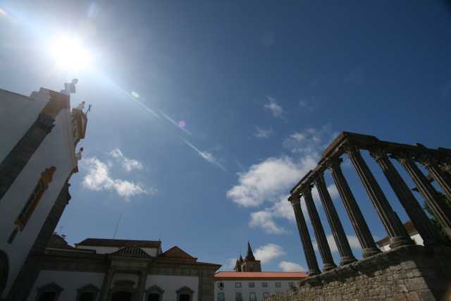 Die größte und schönste Stadt des Alentejo ist ein Weltkulturerbe der Renaissance. Sie ist nicht museal, sondern höchst lebendig. Mit ihren engen, von Bogengängen gesäumten kleinen Gassen besitzt der herrliche Ort einen stark maurischen Charakter. Im Norden steht die Sé, ab 1186 im Übergangsstil von der Romanik zur Gotik errichtet. Sie ist eine der eindrucksvollsten mittelalterlichen Bischofskirchen Protugals. Neben Museen steht auf hohem Sockel der Dianatempel mit 14 korinthischen Granitsäulen. Gegenüber verbirgt sich hinter massigen Mauern die Pousada dos Lóios in einem spätgotisch-maurischen Kloster. Die gotische Kirche Sâo Francisco am Stadtpark ist ein Juwel. Von Èvoras antiker Vergangenheit künden die fast vollsändig erhaltene römische Ringmauer und der einzige verbliebene römische Tempel der Iberischen Halbinsel. Wer die traditionsreiche Stadt mit ihren 30 Kirchen, Klöstern und Palästen kennenlernen will, braucht mehr als einen Tag.