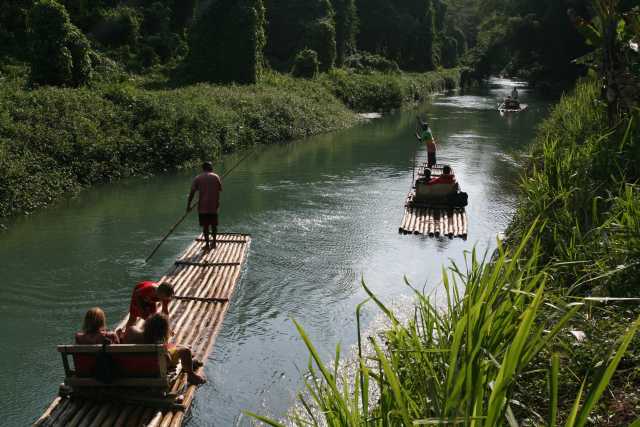 Als wir einen Rastafari nach einem einheimischen Lokal fragten, hörten wir den Spruch zum ersten Mal: "Wo wollt ihr hin, zum Pork Pit? Yaman respect!"- Ja Mann respekt! Lange Strände in Negril und tollkühne Sprünge wie die der Felsakrobaten bei Rick`s Cafè zum Sonnenuntergang verdienen Applaus. Die Y.S. Falls sind nicht spektakulär, aber bezaubernd schön und danach fährt man zum schönsten Tunnel der Welt, der vier Kilometer langen Bamboo Avenue. An alte Glanzzeiten erinnert das Rodney Memorial in Spanish Town. Die Hauptstadt Kingston dominiert mit dem William Grant Park, der Kingston Parish Kirche, der Uferpromenade und dem Devon House. James Bond trinkt ihn, die Queen auch - der Kaffee aus dem 2.000 m Hochland der Blauen Berge, der Blue Mountain Coffee, gilt als einer der besten Sorten der Welt. Eine Attraktion sind die 200 m tief ins Meer stürzenden Dunn`s River Falls in Ocho Rios. Von der Küste aus erklimmen Urlauber die romantische Wasserkulisse. In der herrlichen Naturlandschaft bei Orange Park wird der Sonnenaufgang zum Erlebnis. Smoke wurde uns im Bob Marley Museum in Nine Mile freizügig angeboten - ist halt cool. Die weiße Lady vor der Reggae-Band nahm kräftige Züge. Das gelbe Wohnhaus von Jamaikas Sprintstar und 100- bzw. 200-Meter-Weltrekordler Usain Bolt steht in seinem Heimatdorf Sherwood Content. Erholsam ist ein Rafting Trip mit Bambusfloß auf dem Martha Brae River.