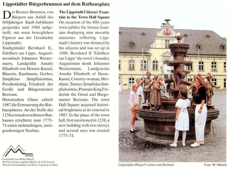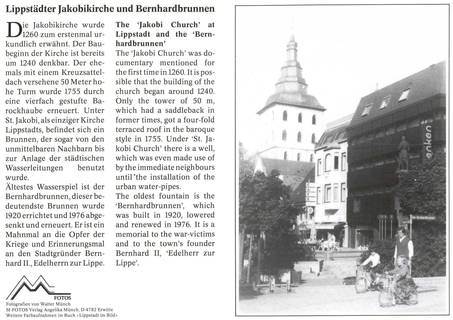 Lippstädter Motive in Farbe sind vom Bürgerbrunnen und Rathaus, sowie in schwarz-weiß vom Bernhardbunnen, Bernhardbrunnen mit Jakobikirche und von der Hellen Halle und Marienkirche erhältlich.