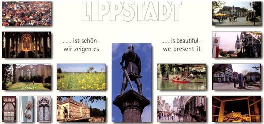 14 Postkarten als PanoramaKalender mit 30 Fotografien von LippstadtLuftFotos über den Stadtgründer, ver- schiedenen Kirchenmotiven, Türen mit Klopfer, einem Schloss und gelungenen Landschaften ist ein umfang- reicher Überblick vorhanden.